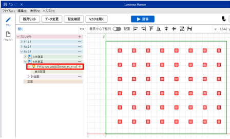 - 移動する器具を選択します。器具を選択した状態は、[赤]で表示します。