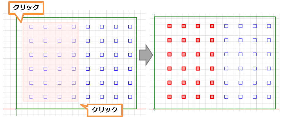 範囲選択 ドラックで範囲を指定することで、範囲選択ができます。
