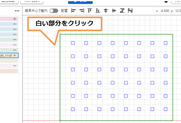 :メインビューで、マウスで移動する器具を選択しドラッグする。
