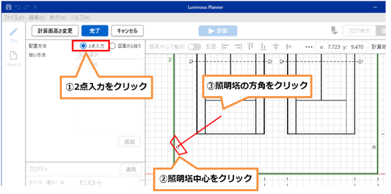 器具を追加するには、あらかじめ照明塔の位置を入力しておく必要があります。