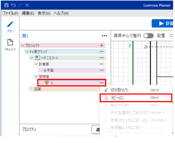 ツリーよりコピー元の照明塔(例:1)を選択し、右ボタンクリックの「コピー」を選択します。