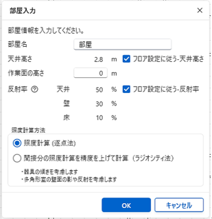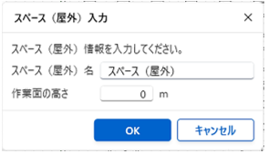 [部屋名/スペース名]と[作業面の高さ]を入力し「OK」をクリックします。