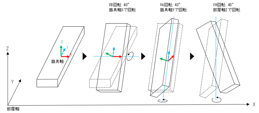 VB(器具軸)→VA(器具軸)→VH(部屋軸)の順番で回転を行います。