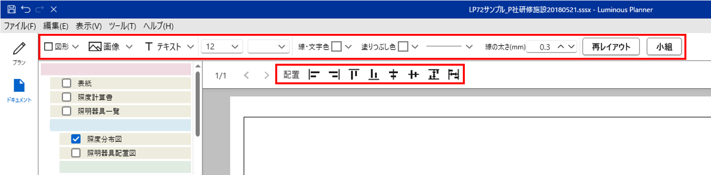 :図形の線の太さを設定します。図形選択時にのみ表示します。 |