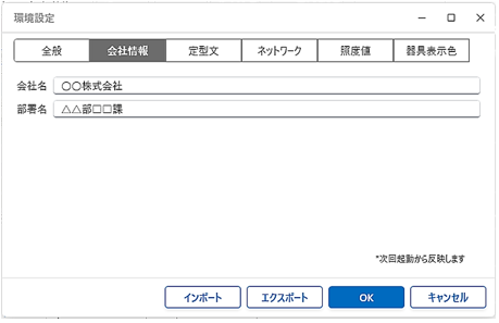※会社情報は「環境設定」-「会社情報」タブから設定できます。環境設定マニュアル:7.5 環境設定