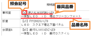 :器具品番、器具名称、照会記号を非表示にしたい場合は、チェックを外します。
