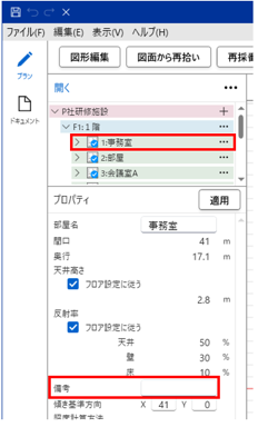 プロジェクト編集画面の部屋のプロパティで設定します。