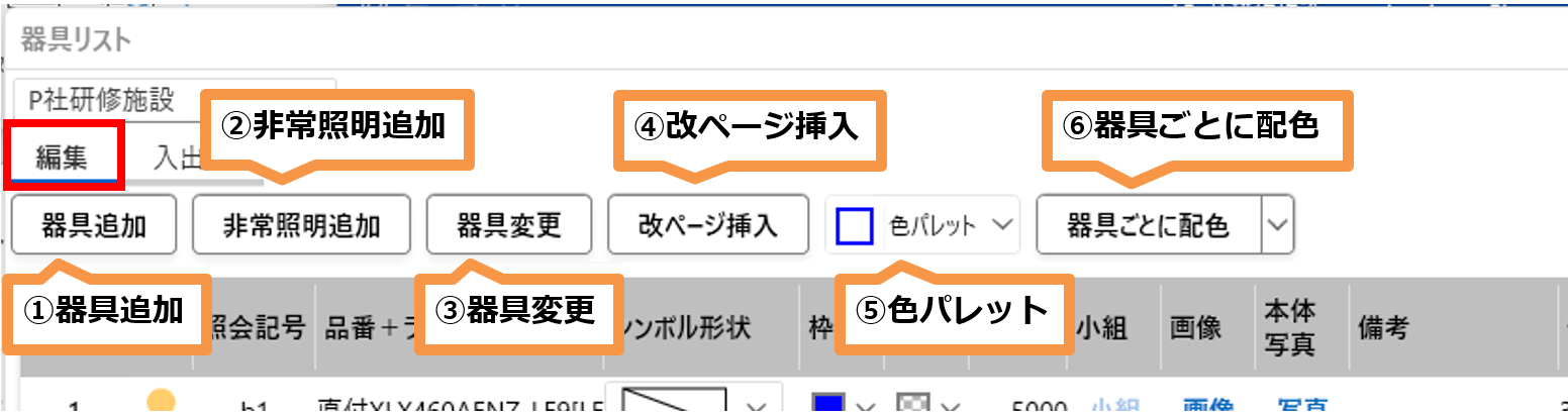 :一括で器具リスト内の器具シンボルの色を変更できます。 |