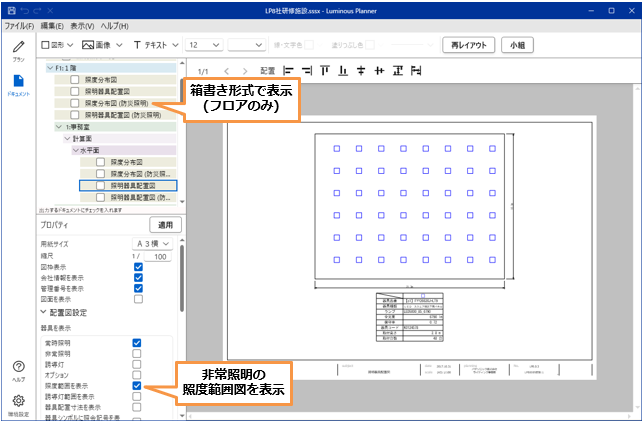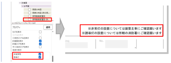 照明器具配置図に免責文の表示・非表示が選択できます。