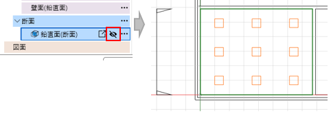 非表示 表示/非表示のアイコンによって断面の表示を切り替えられます。