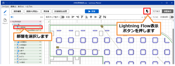 - ツリーから該当の部屋を選択し、メインビューの「Lightning Flow表示」ボタンを押します。