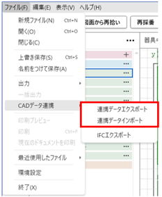 ‐「連携データエクスポート」または「連携データインポート」を選択します。 |