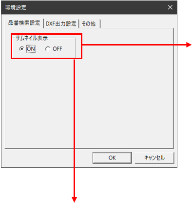 品番一部検索時に、姿図形状のサムネイル表示をするかしないかを選択できます。