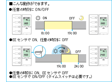 ●LACSLリモコンが使いやすいタイマシステムに変身します。●屋内の操作も屋外の看板灯や外灯もLACSLリモコンだけでOK!●小規模店舗・工場・倉庫をトータルに省エネ制御。