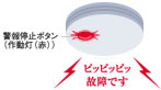 ●機器異常発生時、引きひもを引くか警報停止ボタンを押せば警報音は止まります。