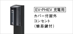 EV・PHEV充電用 ・カバー付屋外コンセント(簡易鍵付) WK4422S(200V ホワイトシルバー) WK4422B(200V ブラック) ・屋外コンセント WK4322S(200V ホワイトシルバー) WK4322B(200V ブラック) それぞれ100V用もあります。 防水コンセント(防水・防塵保護カバー付き) WK4602SK(100V ホワイトシルバー) WK4602BK(100V ブラック) |