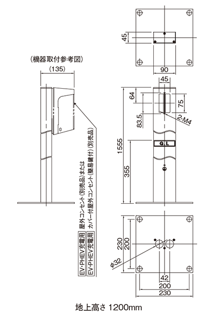 DポールEV・PHEV充電用屋外コンセント用 ベース付