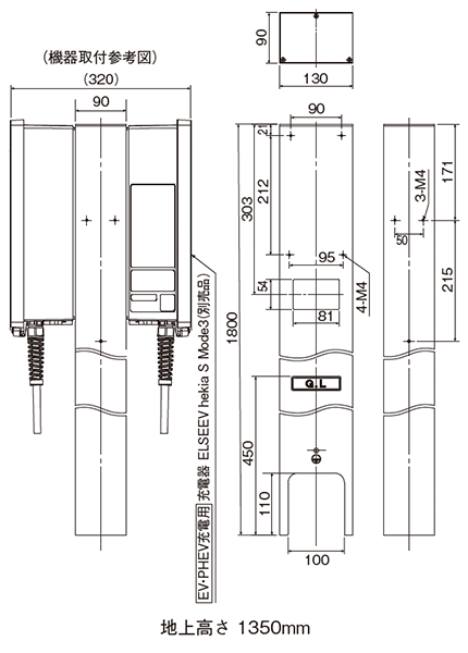Dポール フラットワイドタイプEV・PHEV充電用ELSEEV hekia S Mode3専用