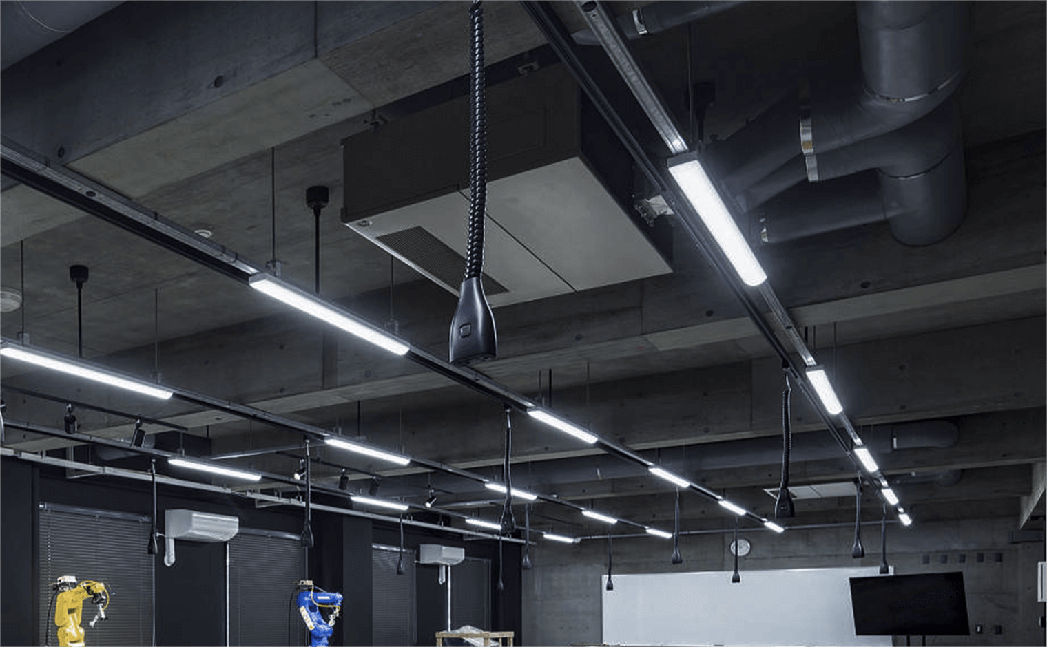 空間は、天井、壁、床面で構成されています。電源を壁、床だけではなく、天井から提供できるOSライン ダブル。多様な利用シーンが想定される空間をデザインするときに選択肢を増やします。