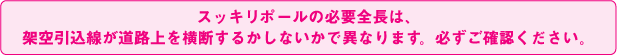 | 最低引込み点高さはすべて4m以上必要です。 すべてのスッキリポールがそのまま設置できます。 |