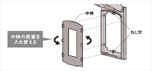 中枠の表裏を入れ替えることで、複数シリーズのコンセントに使用できます。