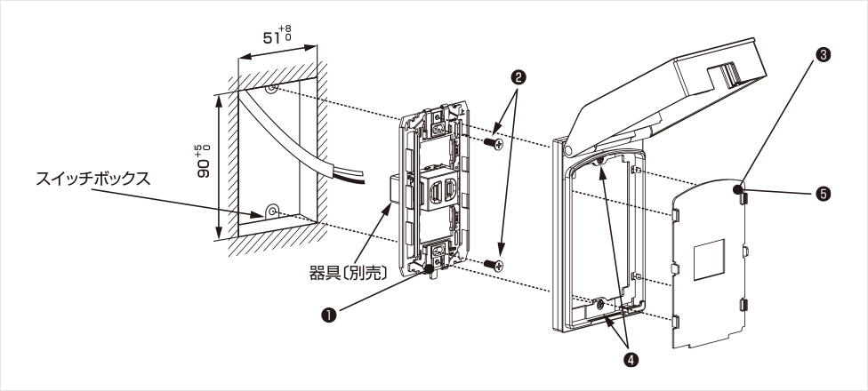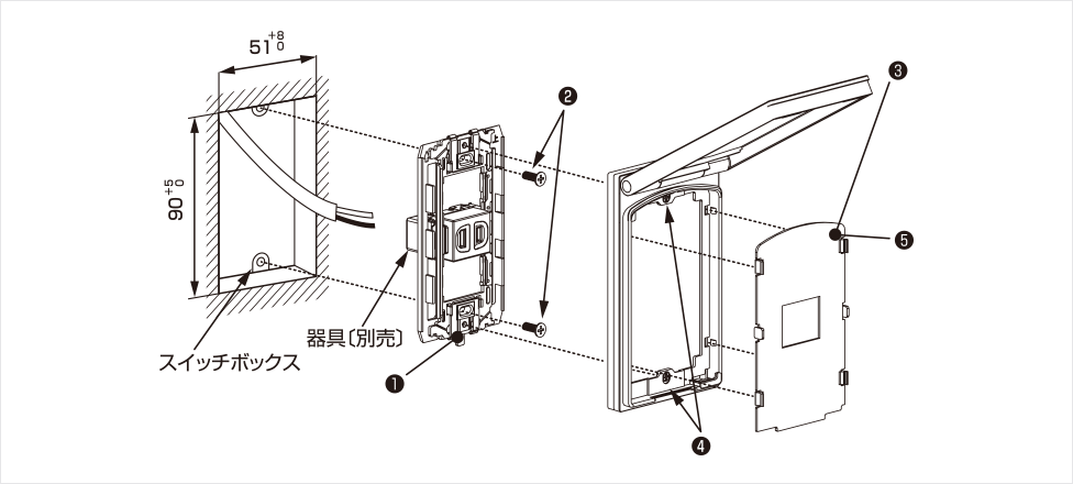 ❶ 絶縁カバーに取付枠(別売)を取り付ける