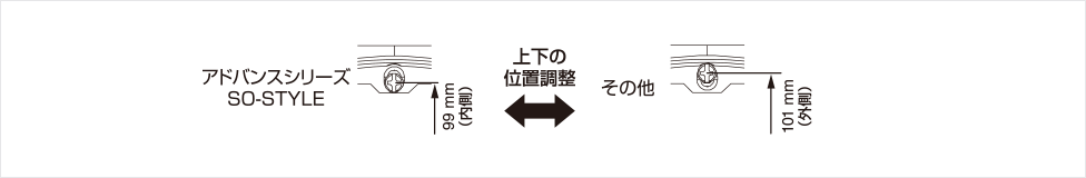 プレートねじ穴も99mmピッチ(アドバンスシリーズ・SO-STYLE取付枠用)、101mmピッチ(その他用)に対応しています。