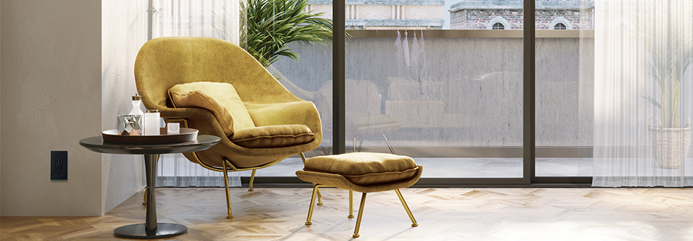 多様な空間ニーズに応える、様々なプレートサイズをご用意。他のコントローラーと並んで設置された時の美しさにも配慮した、高さ120mmを基本とした寸法体系。出代は6.8mmの薄さを実現。プレート部を壁面から少しだけ浮かすことでどんな壁面仕上げにも美しく収まります。