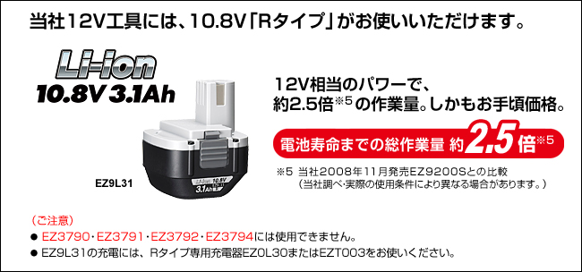 当社3.6Vニカド電池EZ9025より約54%軽量化。(当社調べ)
