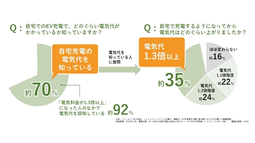 電気自動車(EV)ユーザーの多くが電気代の増加を実感