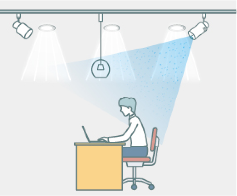 明るさを調整(調光)で省エネ。さらに人や外光をセンサーで検知して、点灯・調光を自動化することができます。