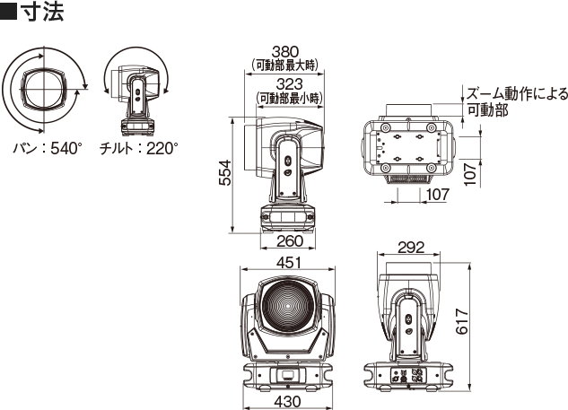 全体回転角度 +45〜−45° - 制御信号 : DMX512(RDM規格対応)