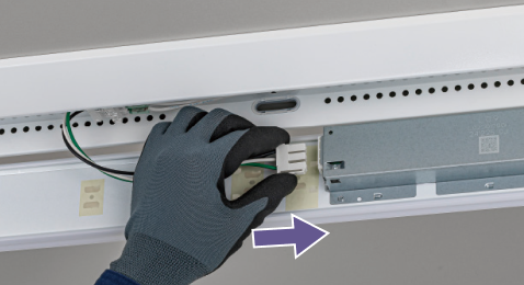 一体型LEDベースライト「iDシリーズ」は、施工性の向上をさらに追求しています。ライトバー(光源)は少ないステップで簡単に取り付け可能です。器具本体の連結時や、リニューアル時の施工をスムーズに行うための様々な工夫を施しています。
