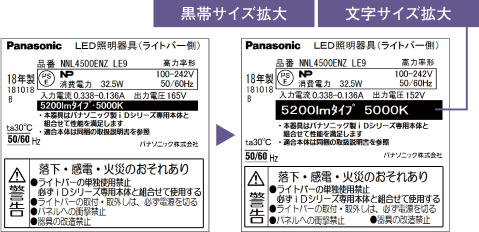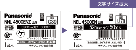 施工現場で最も知りたい「明るさタイプ」「色温度」表示が判別しやすくなるよう、表示方法を変更しました。