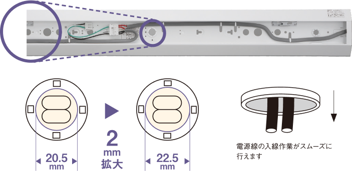 電源線の入線作業がスムーズに