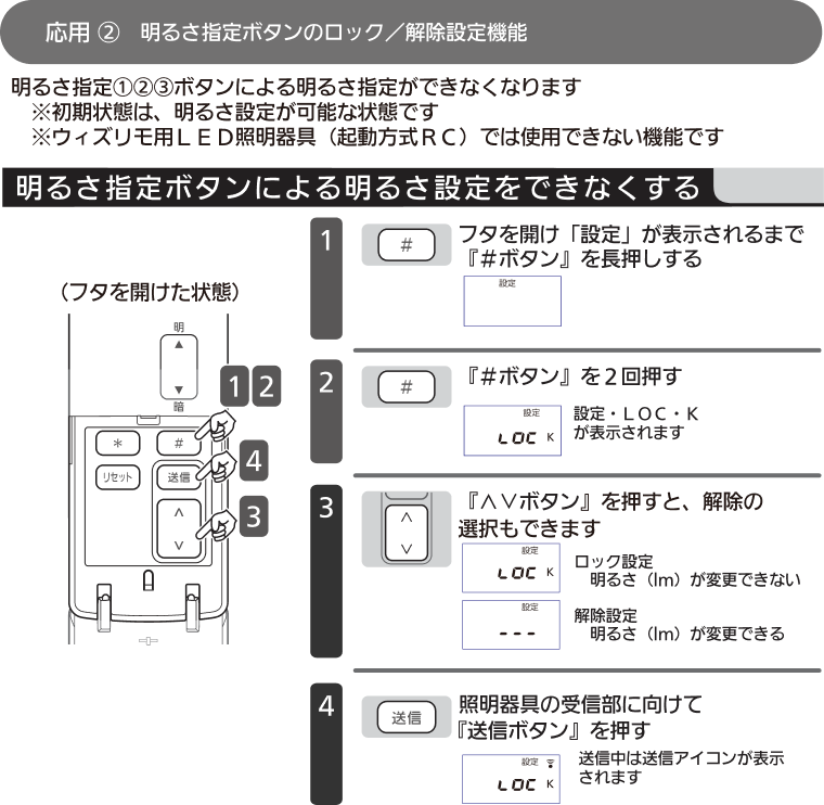 Q01明るさ指定ボタン①②③を押しても器具が反応しないようにしたい