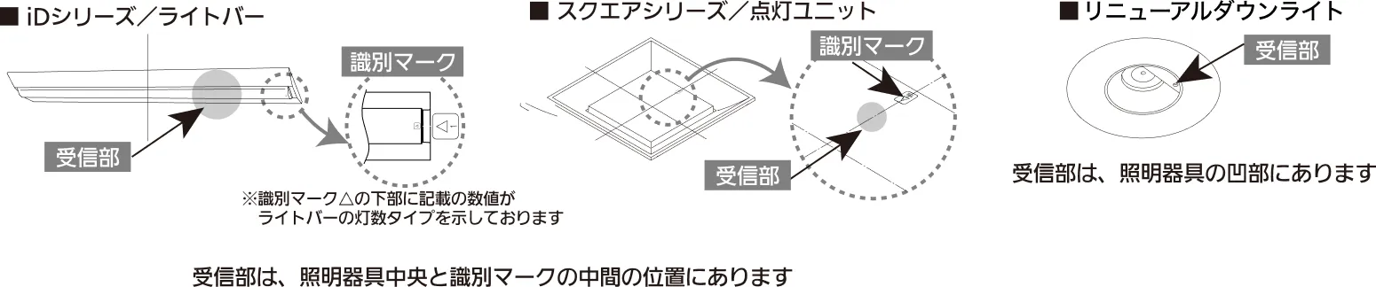 照明器具の受信部に近づけて操作してください。