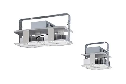 体育館・アリーナ向けのパナソニックの高天井用照明器具。高効率で新築向けです。まぶしさを低減するパネルを採用し、後付けパネルが不要。明るさと配光のバリエーションも豊富で8mから12m程度の高天井に設置できます。