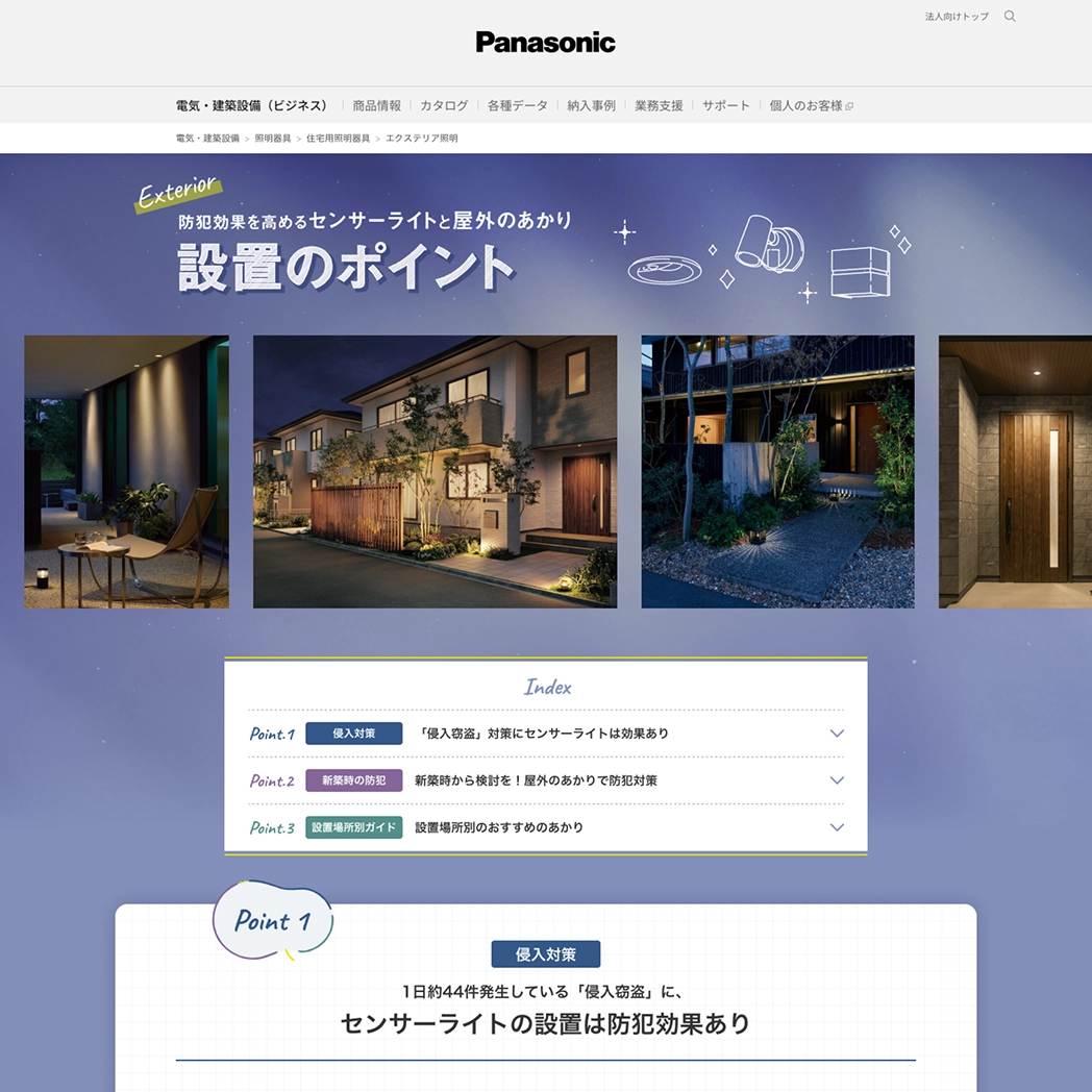 Exterior 防犯効果を高めるセンサーライトと屋外のあかり 設置のポイント