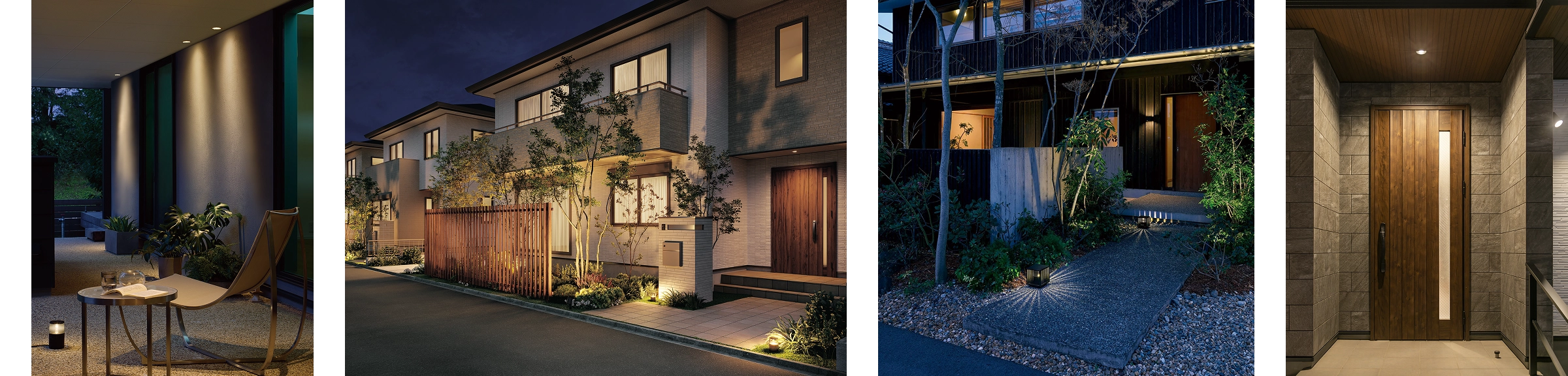 外観にあわせたデザインでの演出や、シンプルに照らすダウンライトなど様々なスタイルがございます