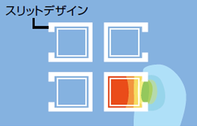 パナソニックの人感センサーは、独自設計による高感度・高信頼性が特長。人の動きを検知する「焦電素子」に独自のスリットを形成することにより、赤外線変化をそれぞれの焦電素子に確実に取り込むことが可能に。高感度を実現しました。
