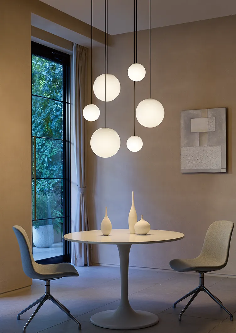 「球」や「半球」、そして「円錐台」の形は、人の記憶の奥にある照明の原形というべきもの。