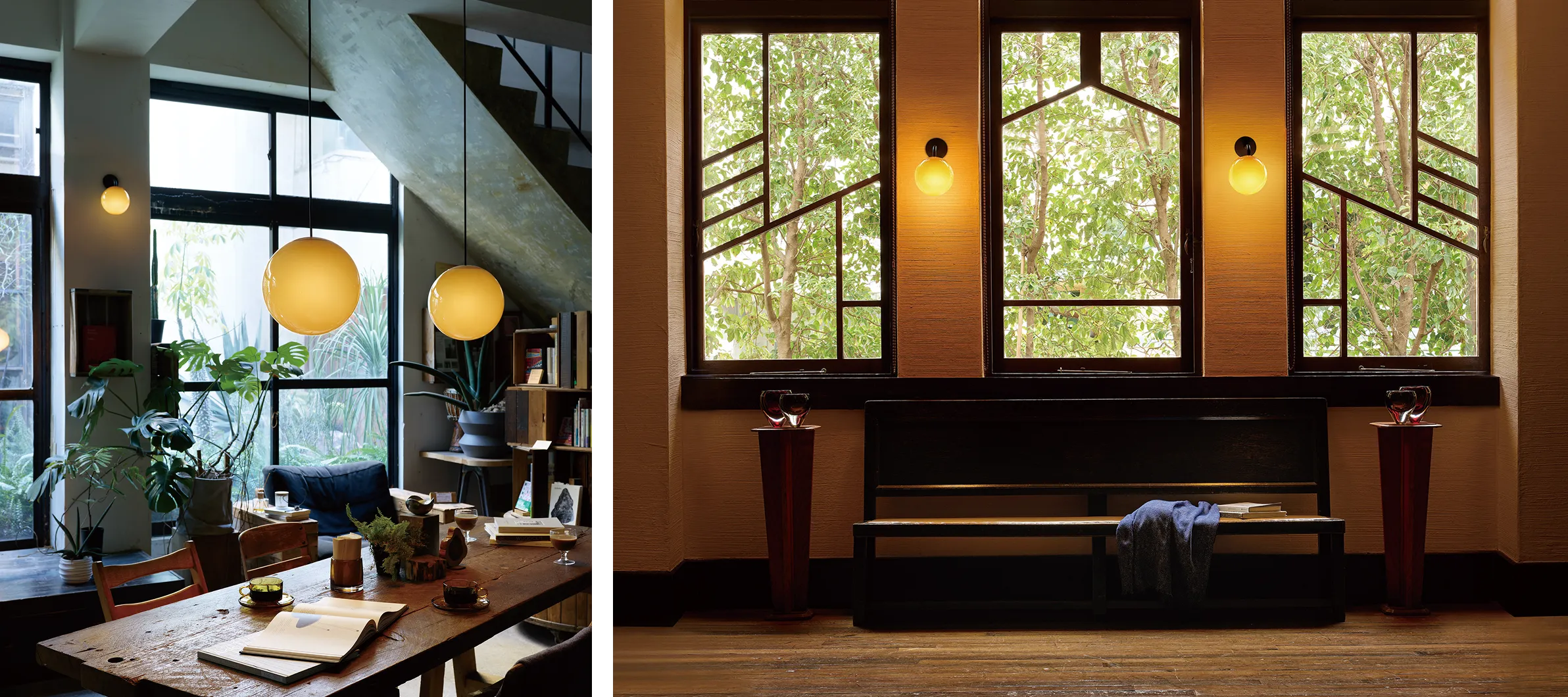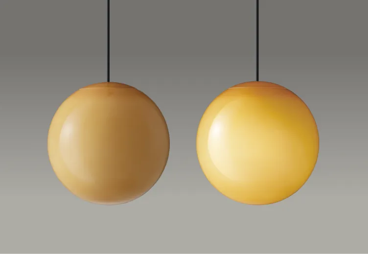 灯すたび、空間に深みを添える琥珀色の光の球。