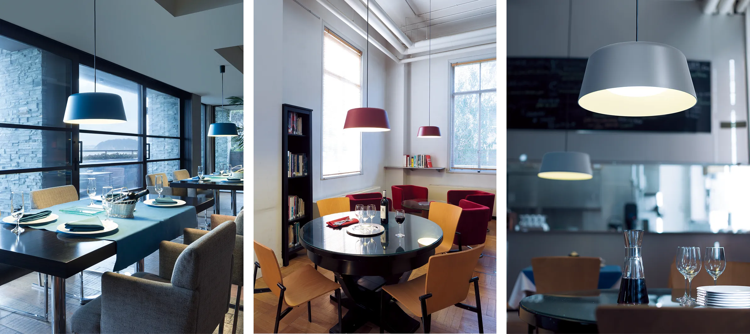 カフェやホテルに程よいアクセントをもたらす、3 色のカラー展開。