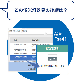 パナソニック製の従来器具なら、品番入力だけで、後継のLED器具に自動で置き換え!