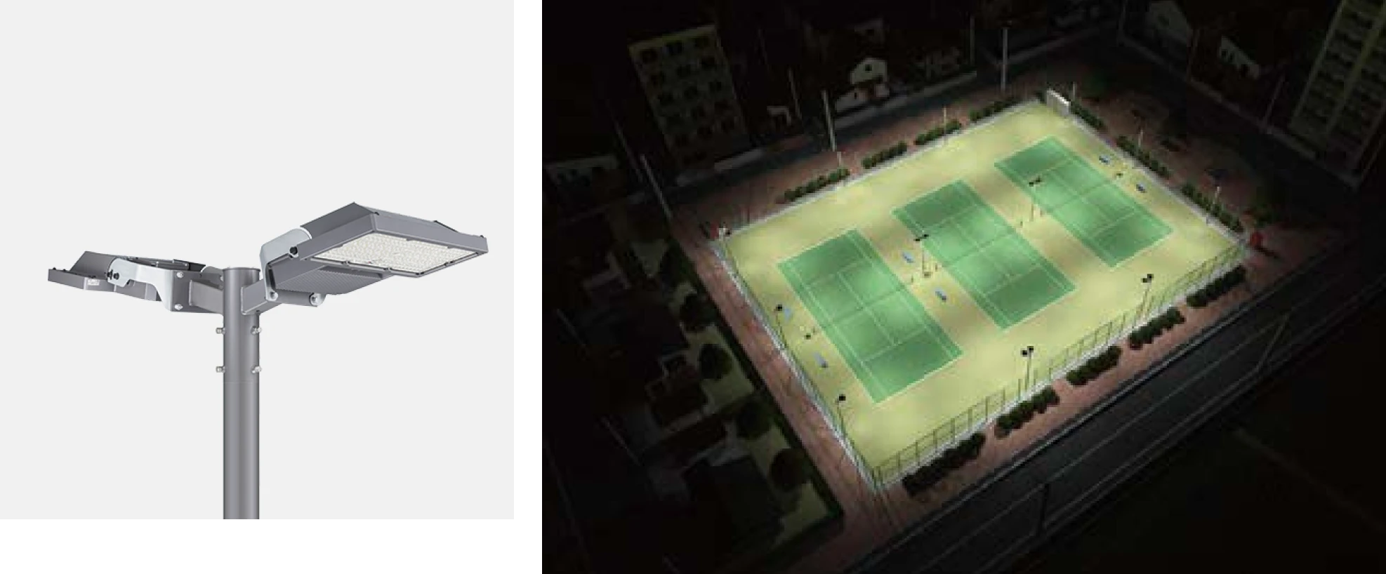 省エネ性と施工性を兼ね備えたテニスコート用照明器具です。簡単リニューアルを実現し、優れた配光抑制により光漏れを大幅に抑制。用途に応じた二種類の明るさをご用意しています。