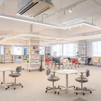 多様性への対応が求められるオフィスにおいては、仕事内容や気分に合わせ場所や時間を自由に選ぶ働き方が主流となり、執務作業もモバイルPCの操作・閲覧が主流となりました。加えて、省エネルギー(ZEB)の観点から、オフィスビルの総電力を抑える政策も広まっています。