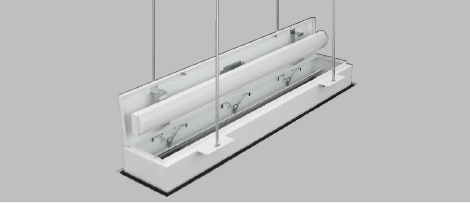クリーンルームではフィルターで濾過された清浄な空気が一定方向に流れています。照明器具でこの気流の流れを乱さないよう、直付型クリーンルーム向け照明器具においては流線形のデザインを採用しています。