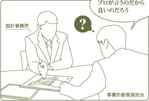 設計者による建築構想の詳細な説明を受けても、具体的な空間イメージを掌握しきれず、曖昧な点も残ったままです。