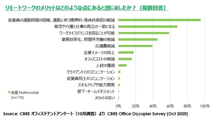 特に興味深いのは「社員の心身の健康」で、多くの回答者がメリット・デメリット双方に挙げています。最初のうちは「これもいいかも」と思ったものの、「長期化するにつけデメリットが目立ってきた」というのが、社員の本音ではないでしょうか。他の調査では、リモートワークについて、「仲間の存在が感じられず不安」「会社に行きたい。みんなと話したい」などの声も聞かれ、長期化するリモートワークに限界を感じている様子がうかがえます。